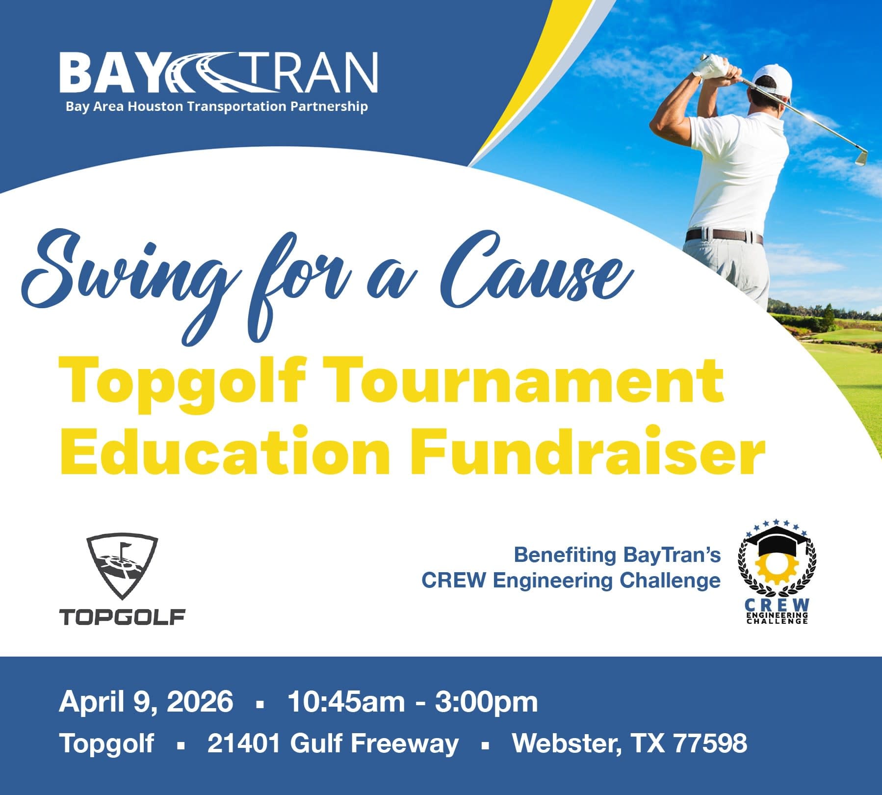 BayTran’s commitment to fostering the next generation of transportation and engineering professionals is showcased through our CREW (Committee for the Recruitment of an Engineering Workforce) Engineering Challenge and annual Topgolf Education Fundraiser. The CREW Engineering Challenge engages local high school students in hands-on, team-based problem-solving activities that simulate real-world transportation and infrastructure challenges, inspiring interest in STEM careers. Proceeds from our Topgolf Education Fundraiser directly support this program, providing resources, materials, and scholarships that help develop future industry leaders while connecting members to a meaningful cause that strengthens our region’s talent pipeline.